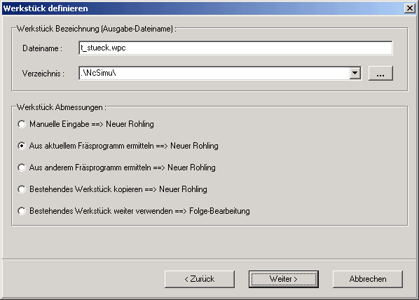 NCSIMU - Werkstückdefinition