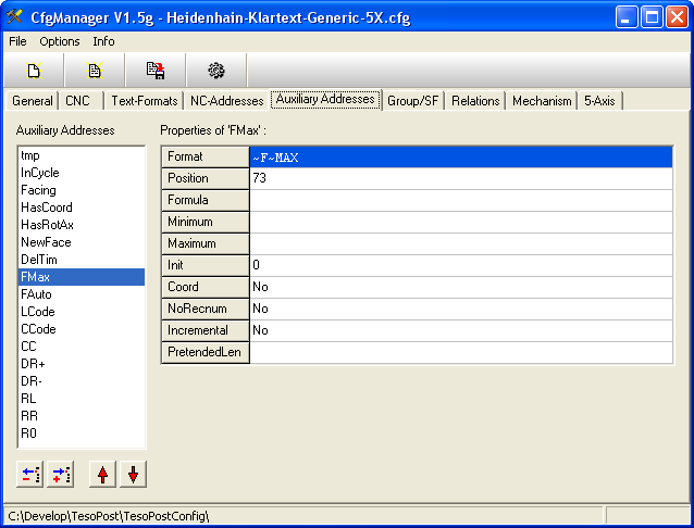 [CfgManager] [General] [CNC] [Text-Formats] [NC-Addresses] [Aux-Addresses] [Group/SF] [Relations] [Mechanism] [5-Axis]